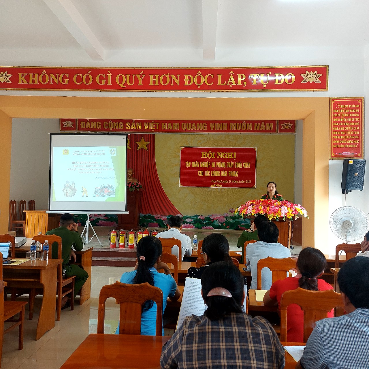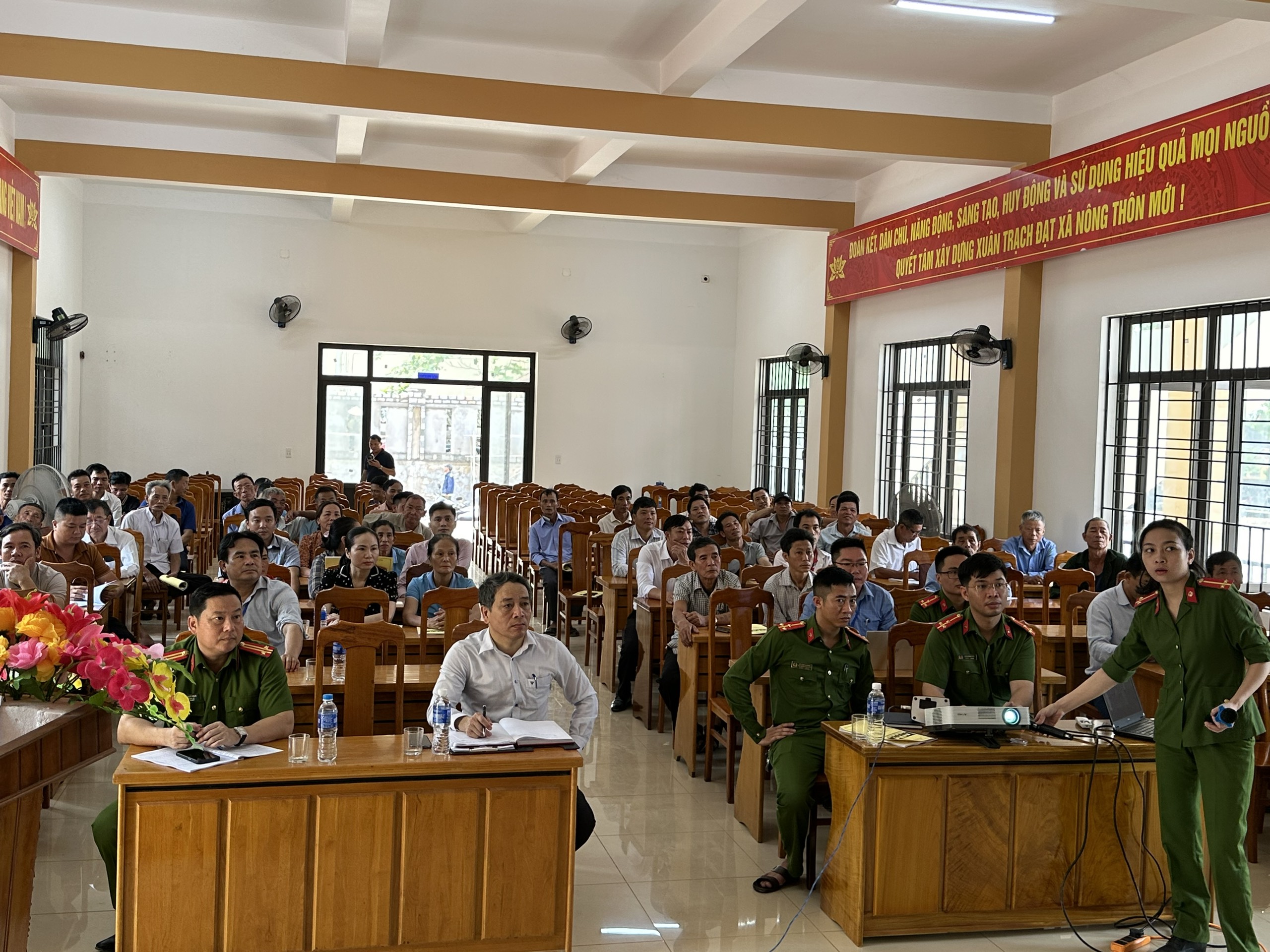 Đội Quản lý hành chính về trật tự xã hội Công an huyện Bố Trạch phối hợp với UBND xã Xuân Trạch, Công an xã Xuân Trạch về huấn luyện, kiểm tra và cấp Chứng nhận huấn luyện nghiệp vụ phòng cháy, chữa cháy cho lực lượng phòng cháy, chữa cháy cơ sở Trụ sở UBND xã Xuân Trạch và lực lượng dân phòng xã Xuân Trạch với tổng số học viên 119 tham gia.