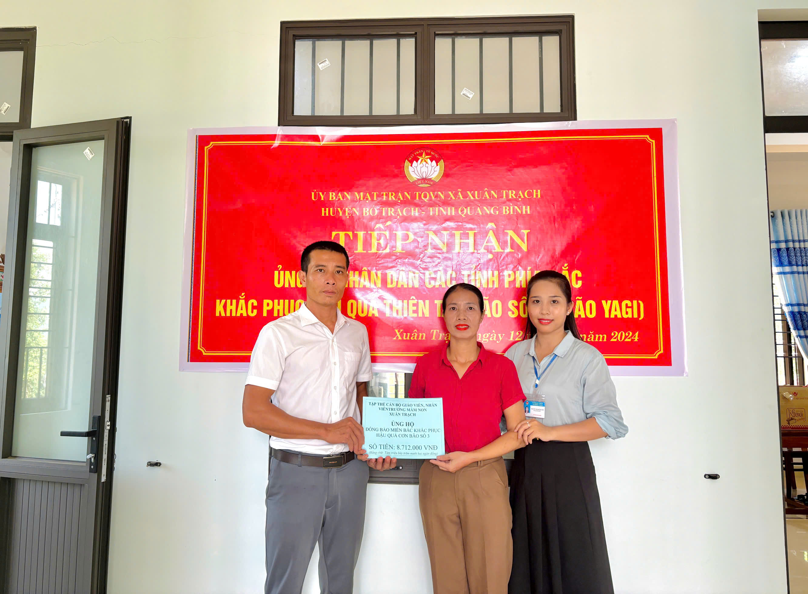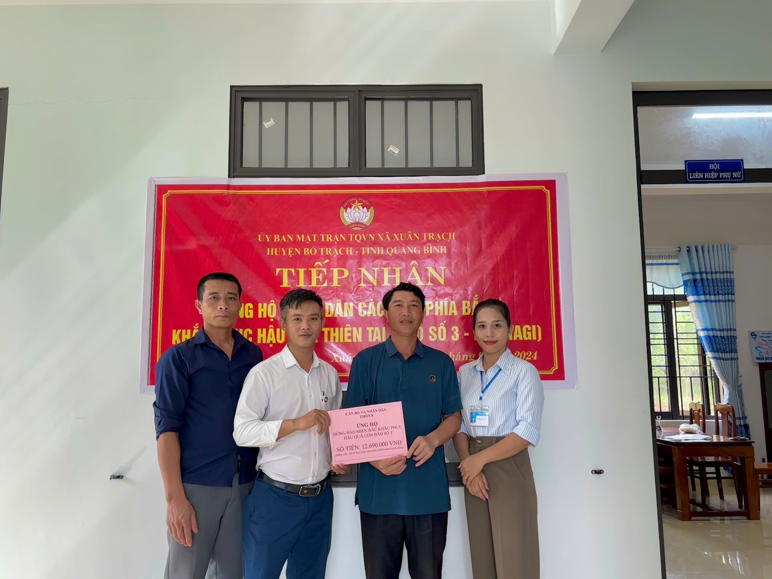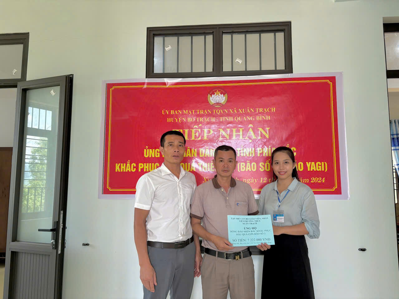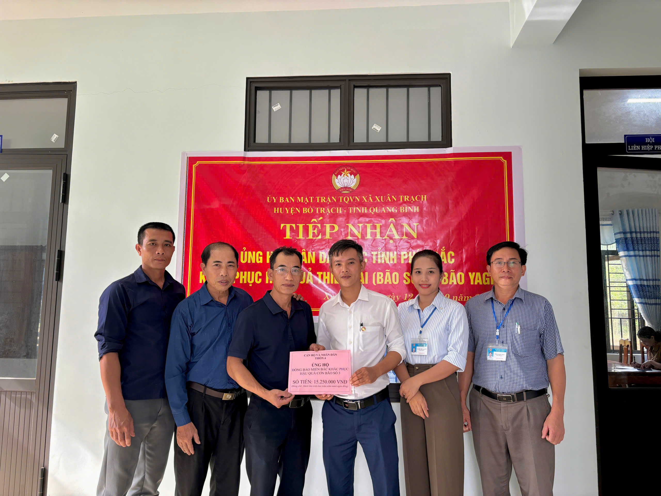 Thường trực Uỷ ban Mặt trận Tổ quốc Việt Nam xã Xuân Trạch đã chuyển số tiền tiếp nhận về Ban cứu trợ của Ủy ban Mặt trận Tổ quốc Việt Nam huyện Bố Trạch, tỉnh Quảng Bình để kịp thời chuyển đến đồng bào các tỉnh phía Bắc. Góp phần cùng đồng bào nhanh chóng khắc phục thiệt hại, để vượt qua những khó khăn, mất mát ổn định đời sống, khôi phục sản xuất./.