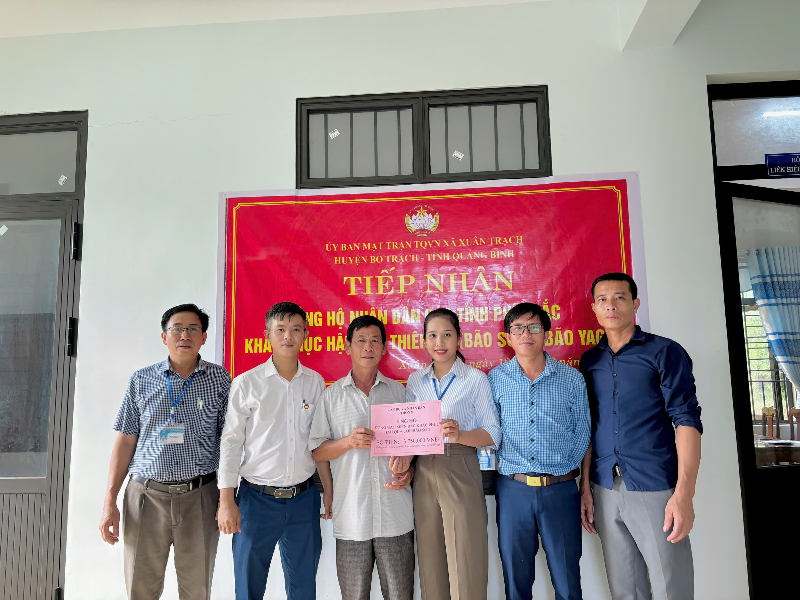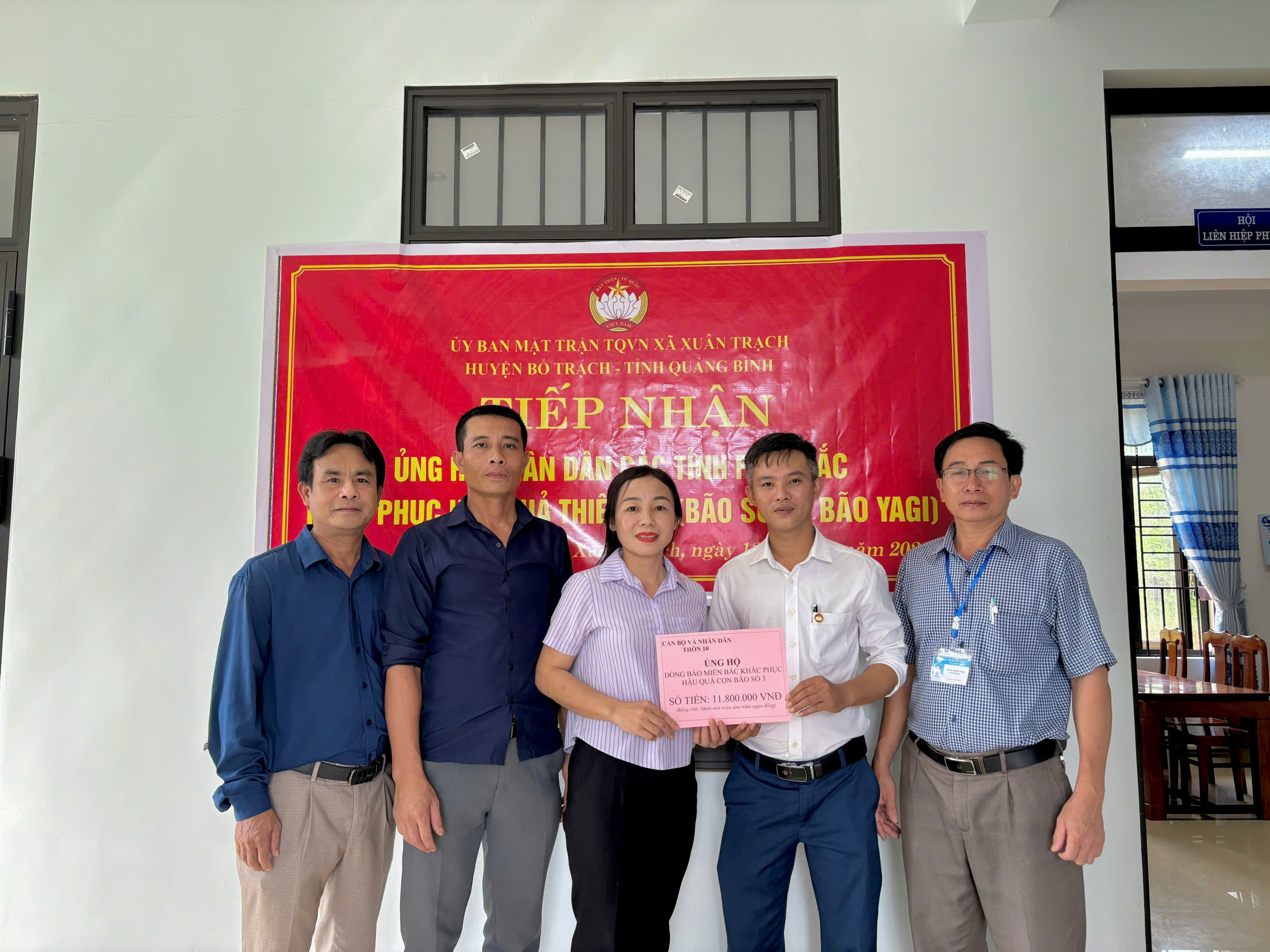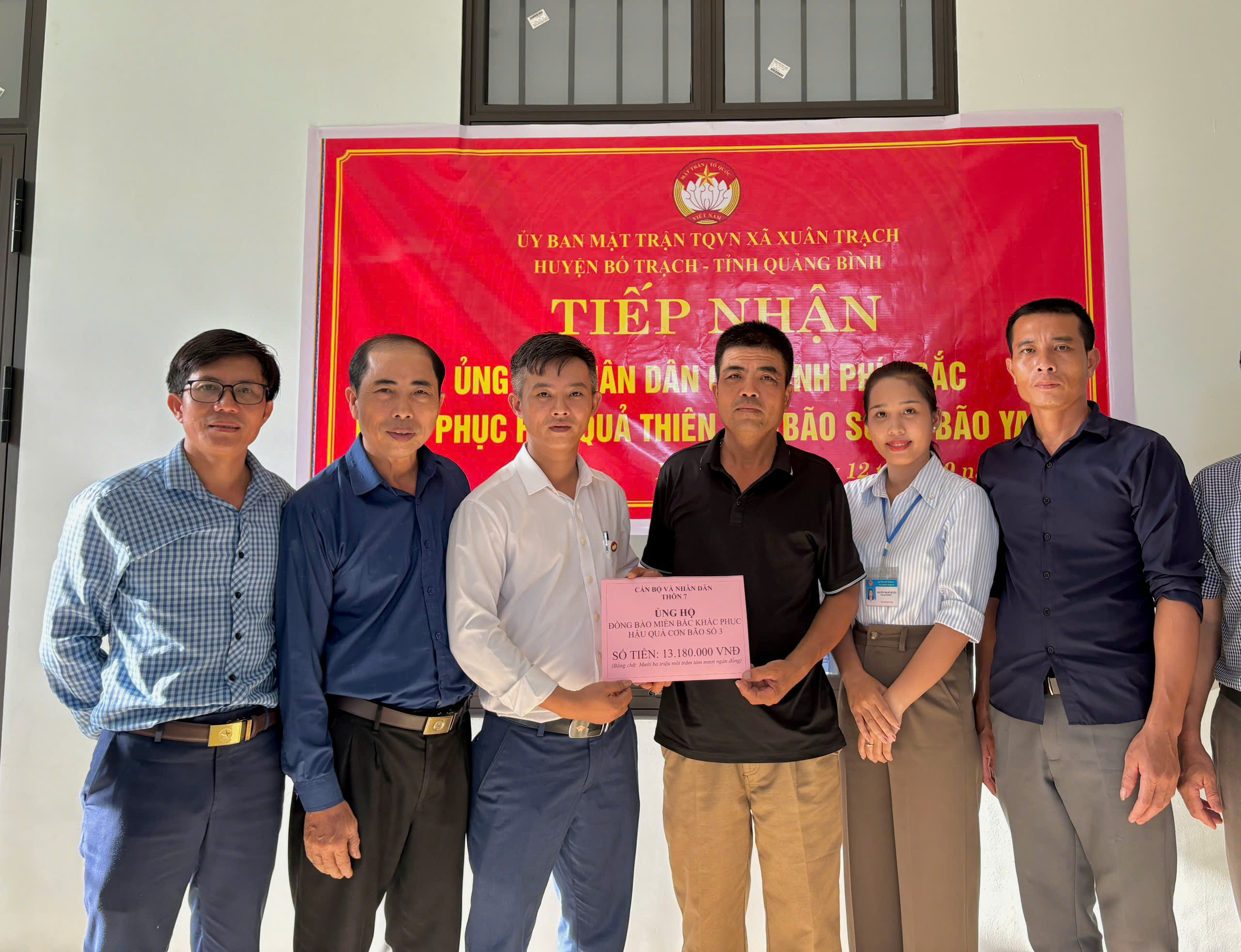 Thường trực Uỷ ban Mặt trận Tổ quốc Việt Nam xã Xuân Trạch đã chuyển số tiền tiếp nhận về Ban cứu trợ của Ủy ban Mặt trận Tổ quốc Việt Nam huyện Bố Trạch, tỉnh Quảng Bình để kịp thời chuyển đến đồng bào các tỉnh phía Bắc. Góp phần cùng đồng bào nhanh chóng khắc phục thiệt hại, để vượt qua những khó khăn, mất mát ổn định đời sống, khôi phục sản xuất./.