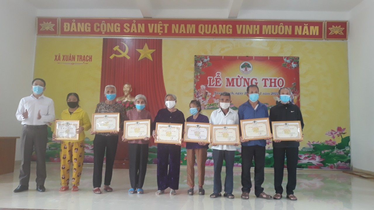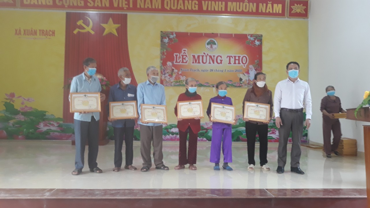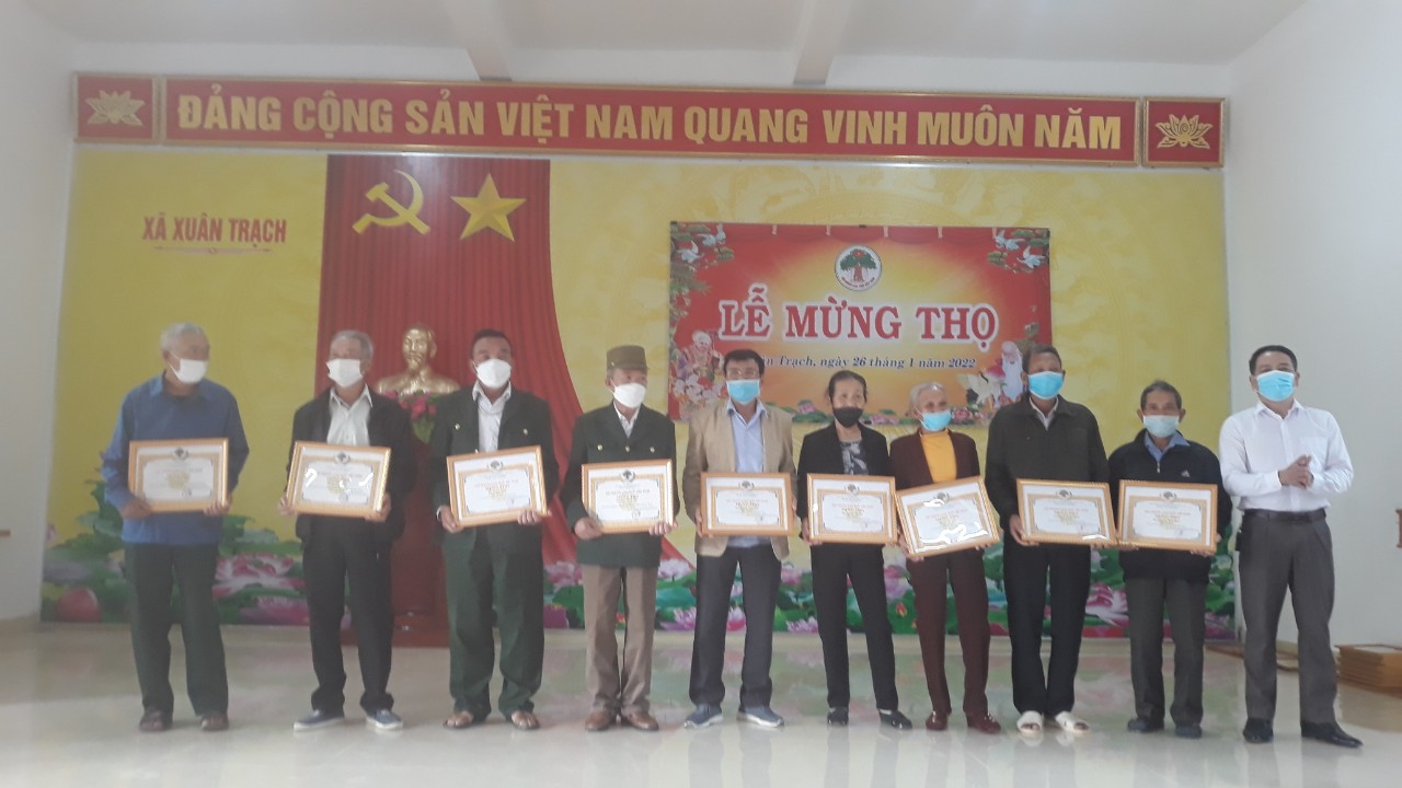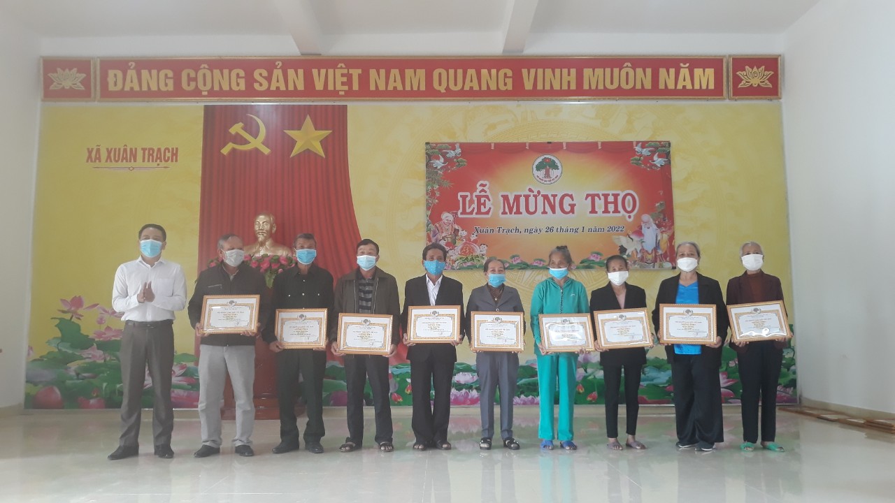 Ngày 26/01/2021 nhằm ngày 24 tháng chạp năm Tân Sửu, Đảng ủy, HĐND, UBND, UBMT TQVN xã Xuân Trạch long trọng tiir chức Lễ mừng thọ cho các cụ cao tuổi: 6 cụ tuổi 95, 12 cụ tuổi 85, 8 cụ tuổi 80, 12 cụ tuổi 75 và 32 cụ tuổi 70.