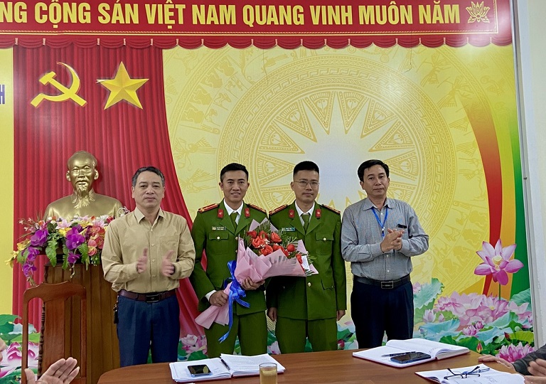 Lãnh đạo xã Xuân Trạch biểu dương tinh thần của các chiến sỹ công an.